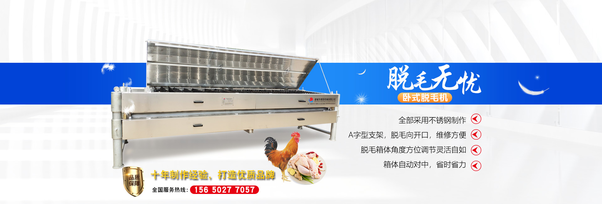 公司長(zhǎng)期與國(guó)內(nèi)外屠宰加工企業(yè)合作,走引進(jìn)——消化——?jiǎng)?chuàng)新和自主研發(fā)相結(jié)合的道路,在國(guó)內(nèi)外同類產(chǎn)品的基礎(chǔ)上,不斷更新和改造。公司主要設(shè)備有:A字型立式脫毛機(jī)、臥式脫毛機(jī)、強(qiáng)力噴淋機(jī)、松毛機(jī)、浸燙池、螺旋預(yù)冷機(jī)、禽籠清洗機(jī)、電暈機(jī)、兔扯皮機(jī)、兔割前爪/后爪機(jī)、剝胗機(jī)、自動(dòng)洗鉤機(jī)、螺旋燙爪機(jī)、雞爪脫皮機(jī)、分割輸送帶等屠宰用設(shè)備。其中,公司獨(dú)力發(fā)明生產(chǎn)設(shè)計(jì)的“電動(dòng)調(diào)節(jié)脫毛機(jī)”及“自動(dòng)控水控溫浸燙池”順利通過知識(shí)產(chǎn)權(quán)局的實(shí)質(zhì)性審查。公司所生產(chǎn)的設(shè)備 可與國(guó)外同類產(chǎn)品配套使用,設(shè)備遠(yuǎn)銷阿爾及利亞、澳大利亞等中東、非州等并建立了長(zhǎng)期穩(wěn)定的合作關(guān)系。